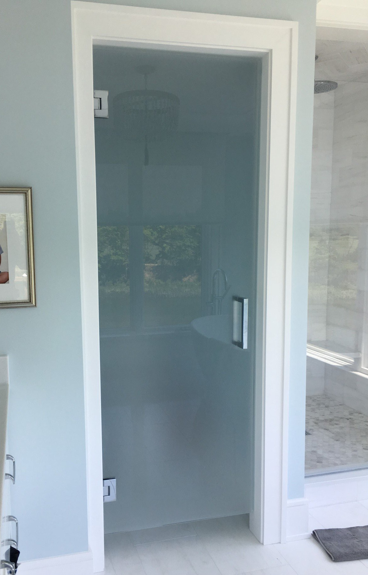 Custom Door Handles • Obscure & Patterned Glass • Soap Scum Resistant Diamond-Fusion Glass Doors